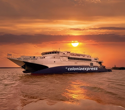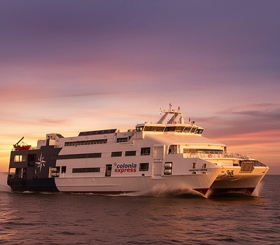 La flota de Colonia Express se caracteriza por ser moderna y rápida, compuesta principalmente por catamaranes de alta velocidad (HSC - High Speed Craft) que conectan Buenos Aires con Colonia del Sacramento.